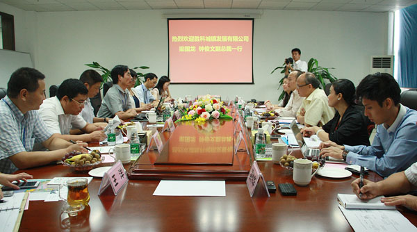 2014年8月12日,勝科城鎮(zhèn)發(fā)展公司副總裁梁國龍、鐘俊文在廣西自治區(qū)商務(wù)廳副廳長韋朝暉、北海市副市長石昆的陪同下赴中國電子北海產(chǎn)業(yè)園,就以北部灣智慧生態(tài)電子城項(xiàng)目為基礎(chǔ),雙方進(jìn)行戰(zhàn)略合作有關(guān)事宜進(jìn)行實(shí)地考察。考察期間,自治區(qū)黨委常委、北海市委王小東書記進(jìn)行了親切會見,北海市政府林山青常務(wù)副市長帶隊(duì)與考察團(tuán)進(jìn)行了座談。