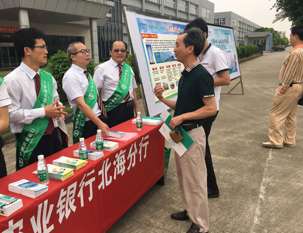 金融服務助力園區(qū)企業(yè)。配合營改增及雙創(chuàng)活動,農(nóng)業(yè)銀行北海分行主動走入園區(qū),宣傳金融服務政策,為園區(qū)進出口企業(yè)國際貿(mào)易給予最便利的結(jié)算及優(yōu)惠,為輕資產(chǎn)企業(yè)量身定造最便捷的融資渠道,助力解決園區(qū)企業(yè)資金需求。