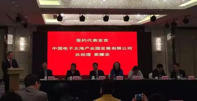 桂林電子科技大學(xué)副校長胡澤民,北海市工信委主任李光劭,招商局副局長廖克輝,高新區(qū)主任李斌施,出口加工區(qū)副主任黃興煥,工業(yè)園區(qū)管委會副主任郭彥江等出席簽約儀式。