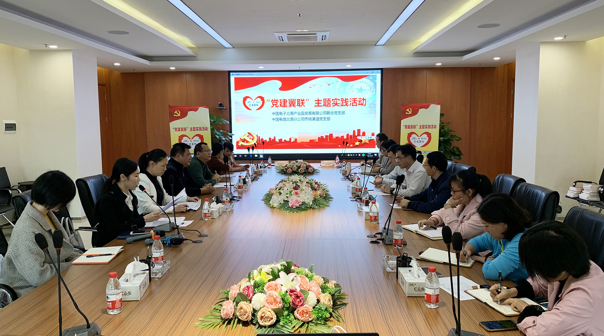 出席簽約儀式的領(lǐng)導(dǎo)嘉賓有:北海工業(yè)園區(qū)管委會黨工委委員、管委會副主任鐘景宇,黨群工作部部長石玉成,中國電子北海產(chǎn)業(yè)園公司副總經(jīng)理李輝,聯(lián)合支部書記、招商總監(jiān)劉曉娟,中國電信北海分公司副總經(jīng)理羅斌,黨群部副主任高偉伶,支部書記鐘軍以及部分企業(yè)黨員代表。