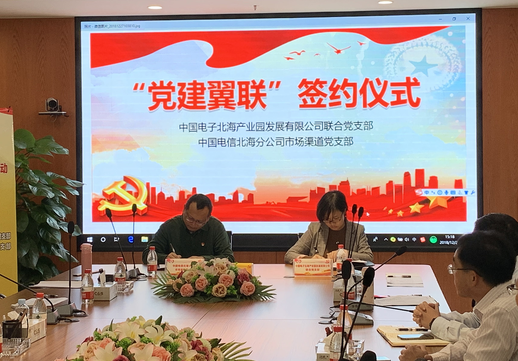 為深入學(xué)習(xí)貫徹黨的十九大精神,堅(jiān)持以習(xí)近平新時(shí)代中國特色社會主義思想為指導(dǎo),落實(shí)新時(shí)代黨的建設(shè)總要求,充分發(fā)揮基層黨支部的主體作用,激發(fā)黨員的活力。2018年12月27日,中國電子北海產(chǎn)業(yè)園發(fā)展有限公司聯(lián)合支部委員會、中國電信股份有限公司北海分公司市場渠道支部委員會簽署了“黨建翼聯(lián)”合作書,旨為整合雙方在黨建、科技、電子信息產(chǎn)業(yè)的資源優(yōu)勢,以共建共享為基礎(chǔ),以合作共贏為目的,積極拓展黨組織功能,發(fā)揮黨員先鋒模范作為,積極推進(jìn)事業(yè)發(fā)展,助力北海電子信息產(chǎn)業(yè)升級轉(zhuǎn)型。