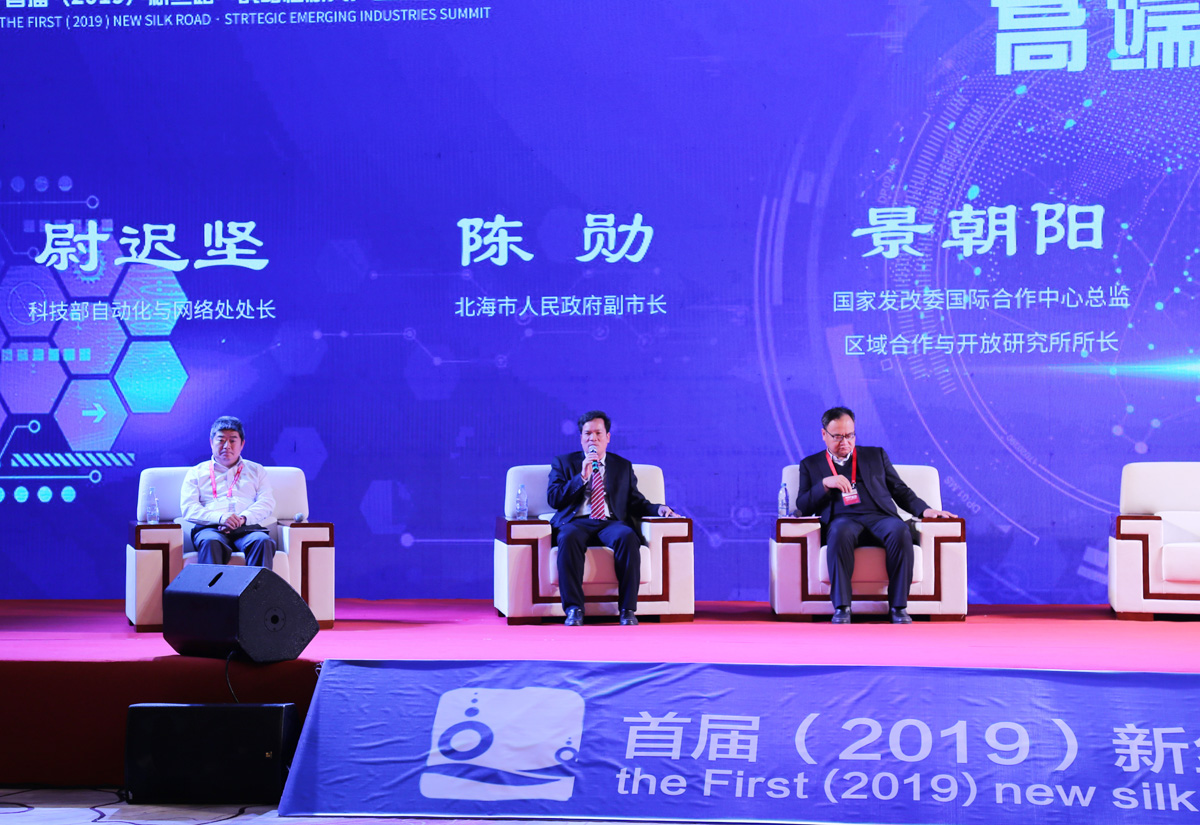 2019年1月10日,以“創(chuàng)新引領(lǐng)戰(zhàn)略性新興產(chǎn)業(yè)”為主題的首屆(2019)新絲路·戰(zhàn)略性新興產(chǎn)業(yè)高峰論壇在北海舉行。外貿(mào)部原副部長周可仁、市長蔡錦軍、中電北海產(chǎn)業(yè)園公司董事長索耀宗出席論壇并致辭。有關(guān)國家部委領(lǐng)導(dǎo)、院士專家、行業(yè)組織的代表,新一代信息技術(shù)、智能制造、大健康、影視文化等國內(nèi)外企業(yè)家以及金融投資機(jī)構(gòu)負(fù)責(zé)人、媒體機(jī)構(gòu)代表、科研院所代表500多人參加了此次盛會(huì)。