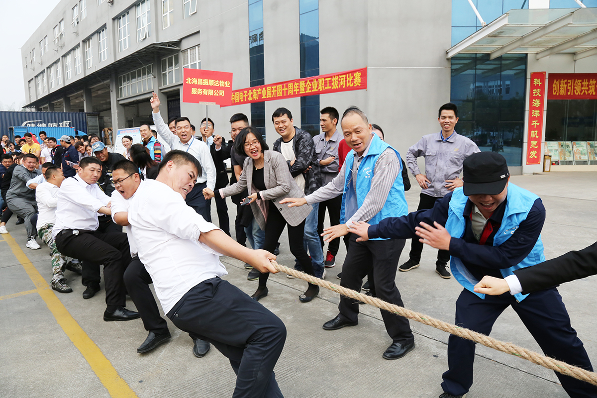2019年12月30日下午,中國電子北海產(chǎn)業(yè)園組織各入園企業(yè),舉行拔河比賽活動,慶祝中國電子北海產(chǎn)業(yè)園開園十周年。